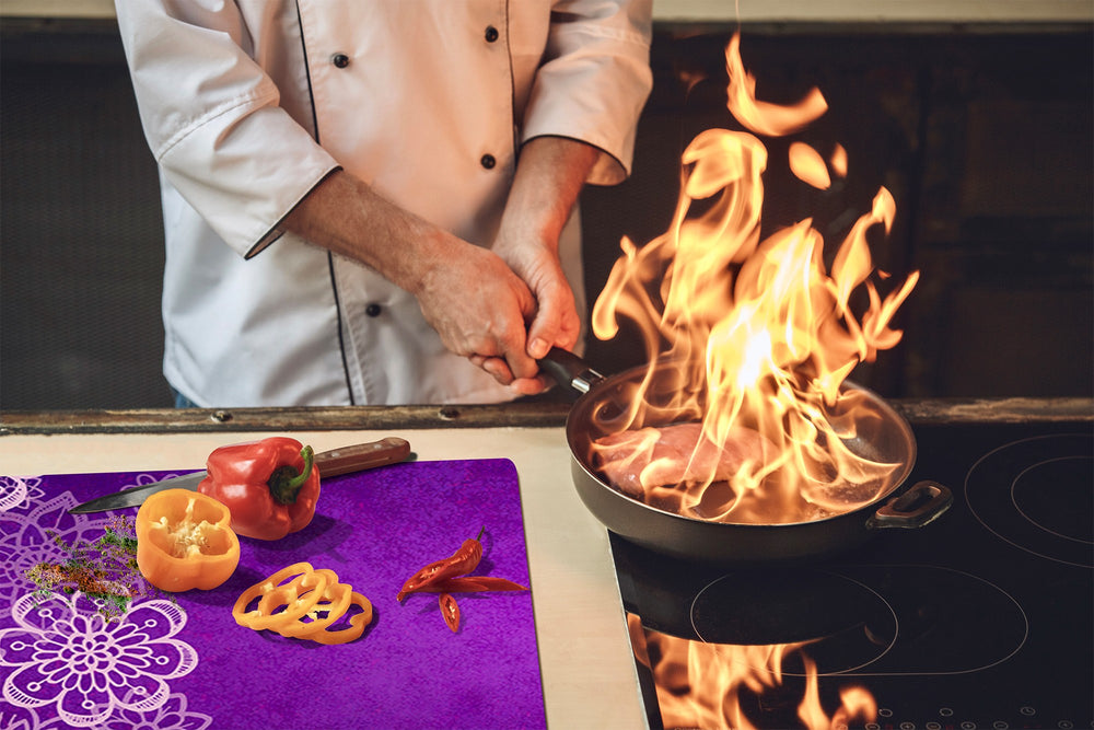 - TEMPERED GLASS Kitchen Board both highly functional and beautiful is a must-have in every modern home; its colorful, artistic designs bring a sleek and contemporary style to your kitchen or dining area