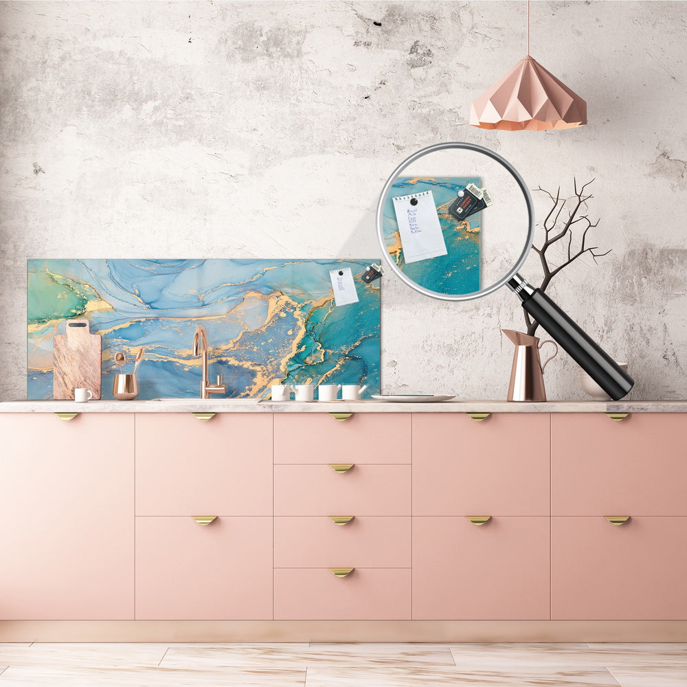 Our Glass Splashbacks can be used as: kitchen anti-splash panel, magnetic surface kitchen backsplash, bathroom backsplash, magnetic splashback for wall protection, protective panel for kitchen, splashbacks for bathroom sinks, kitchen memo board and similar.