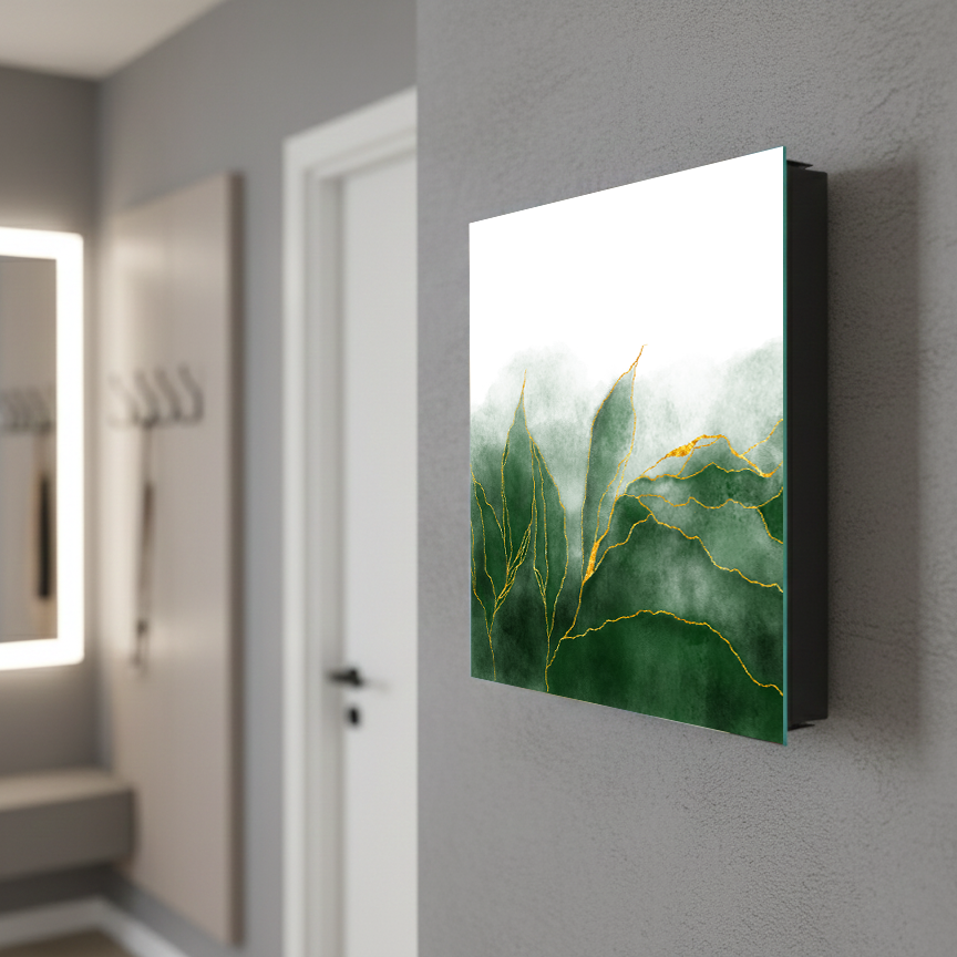 - DREI IN EINS: Schlüsselschrank – Magnettafel aus Glas für Mitteilungen – kunstvolle Dekoration
