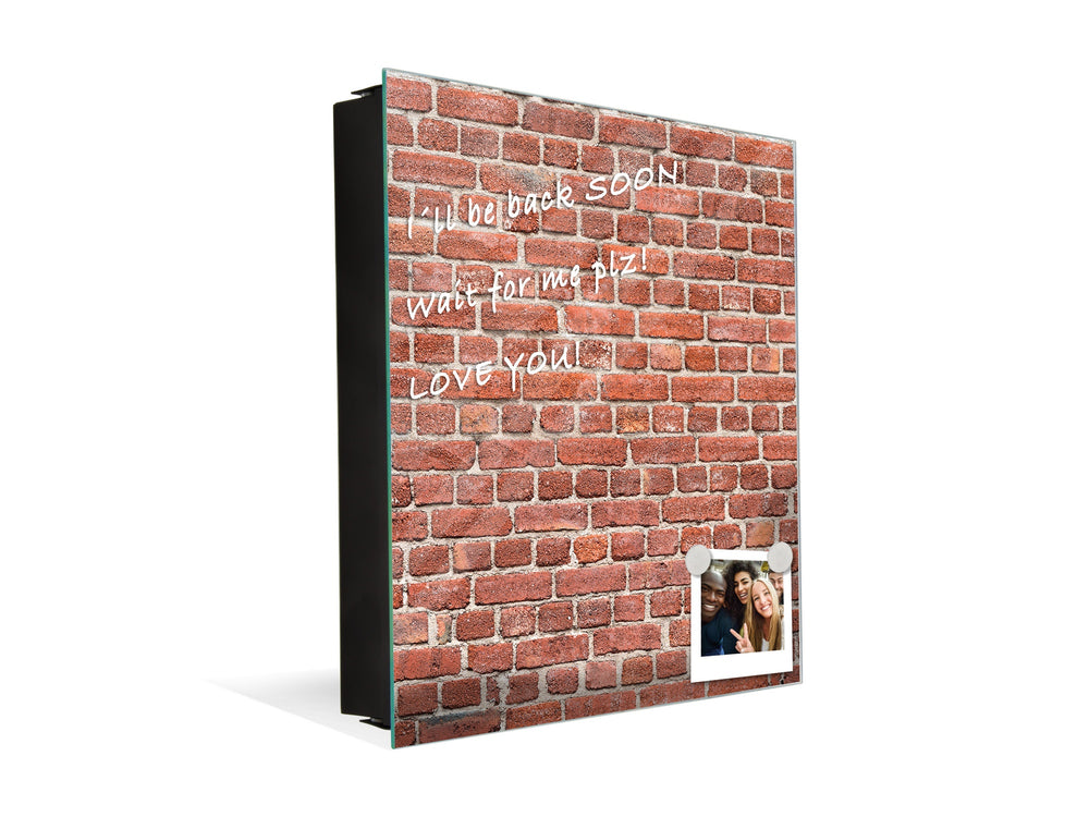Unsere Key Box ist mit einem personalisierten Design Ihrer Wahl erhältlich und fungiert auch als handliche, trocken abwischbare Magnettafel aus Glas für alle Notizen und Mitteilungen der Familie!