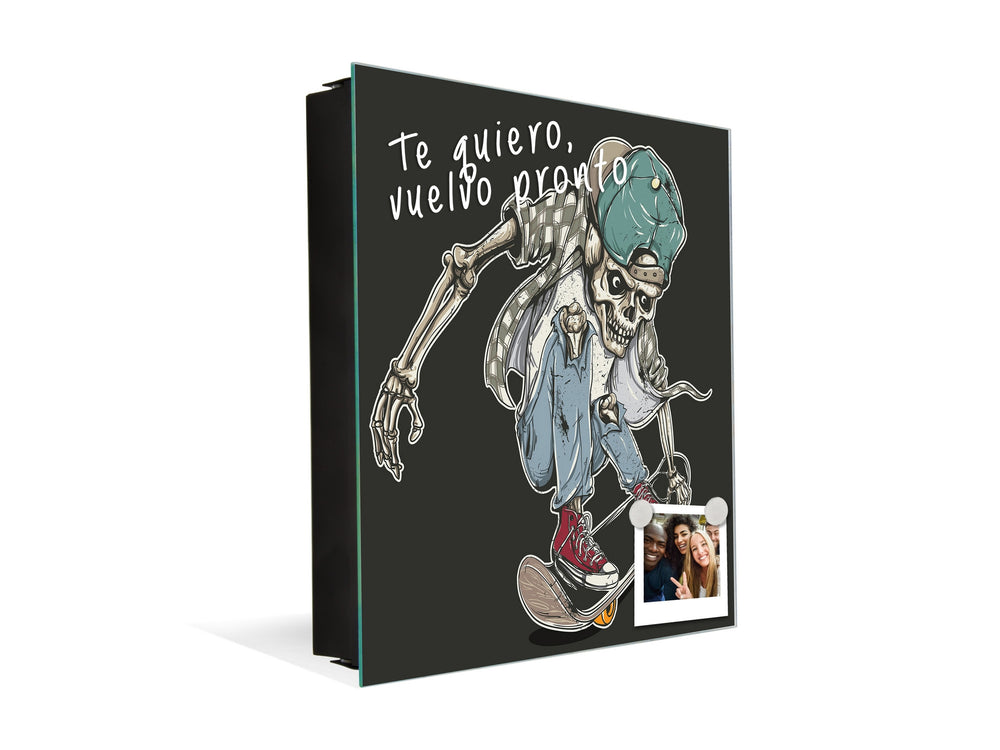 Unsere Key Box ist mit einem personalisierten Design Ihrer Wahl erhältlich und fungiert auch als handliche, trocken abwischbare Magnettafel aus Glas für alle Notizen und Mitteilungen der Familie!