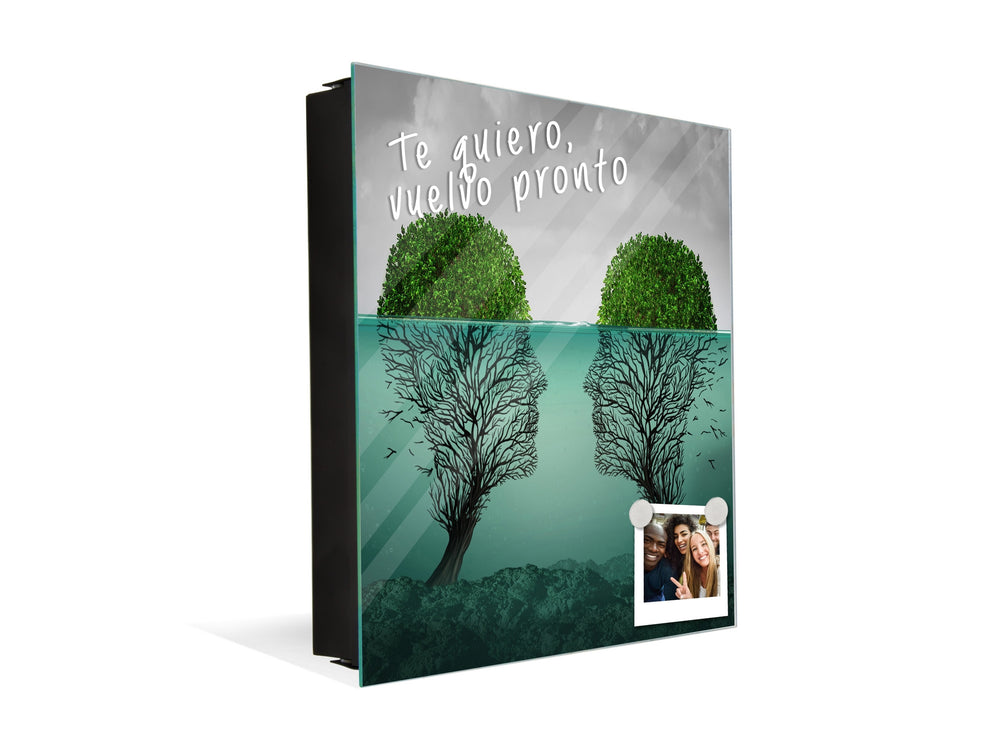 Unsere Key Box ist mit einem personalisierten Design Ihrer Wahl erhältlich und fungiert auch als handliche, trocken abwischbare Magnettafel aus Glas für alle Notizen und Mitteilungen der Familie!