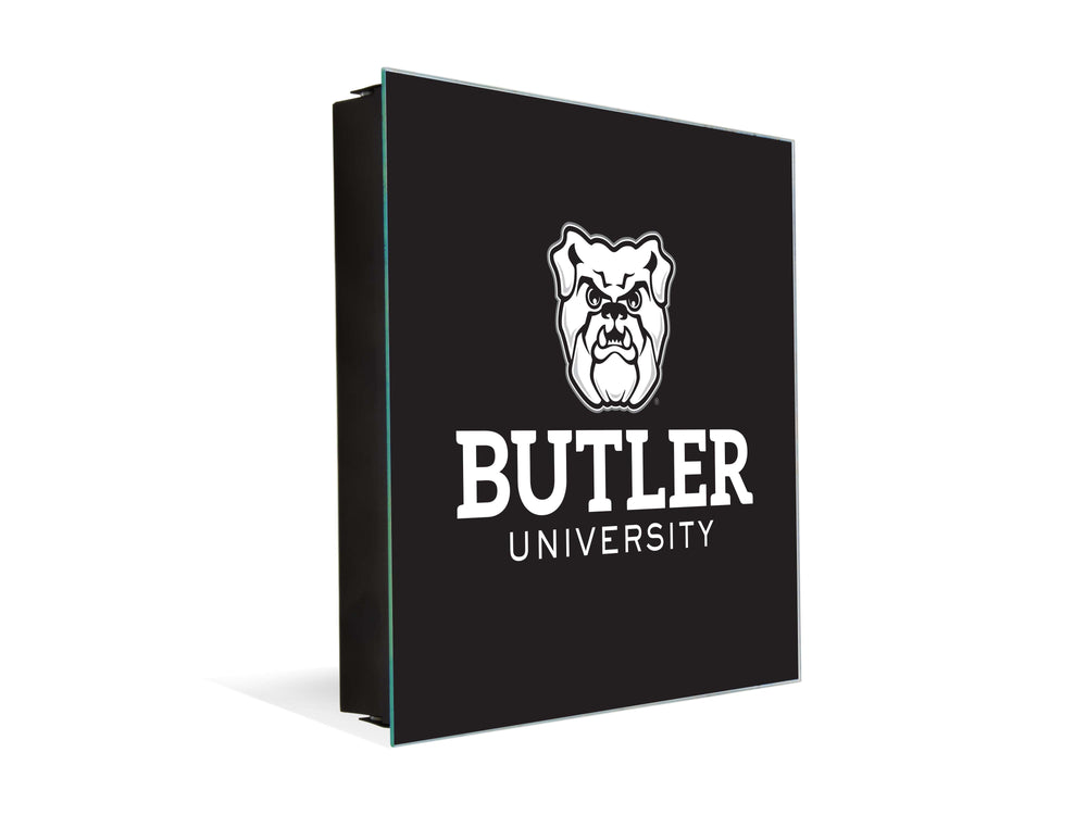 Nuestro gabinete de llaves montado en la pared viene con el diseño personalizado de su elección y también es una práctica pizarra magnética de vidrio de borrado en seco para todas las notas y mensajes de la familia.