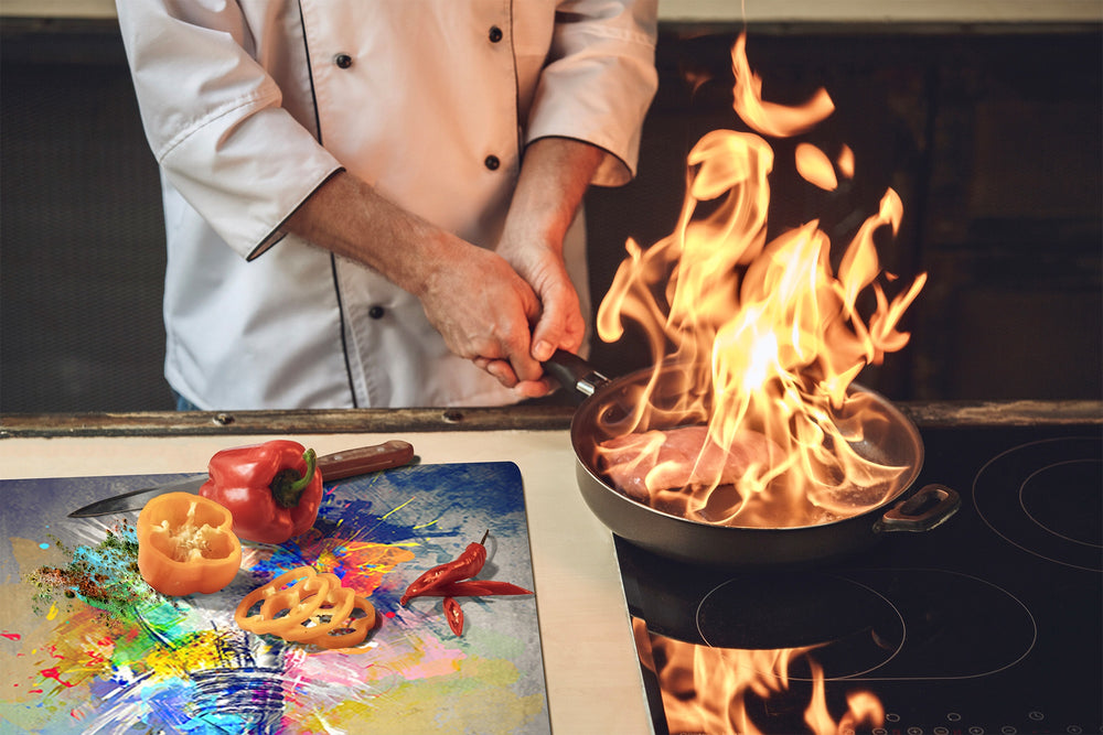 Hecho de vidrio templado de alta calidad, este hermoso y original cubre vitro y protector de cocina será perfecto como superficie de trabajo adicional o protector de encimeras. Seguramente decorará cualquier mueble de cocina de forma agradable.