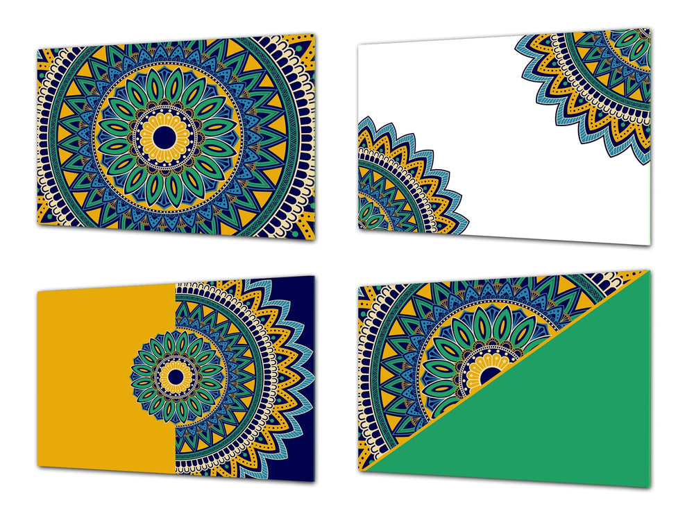 Conjunto de 4 tablas para picar de cristal templado con bordes pulidos y redondeados.