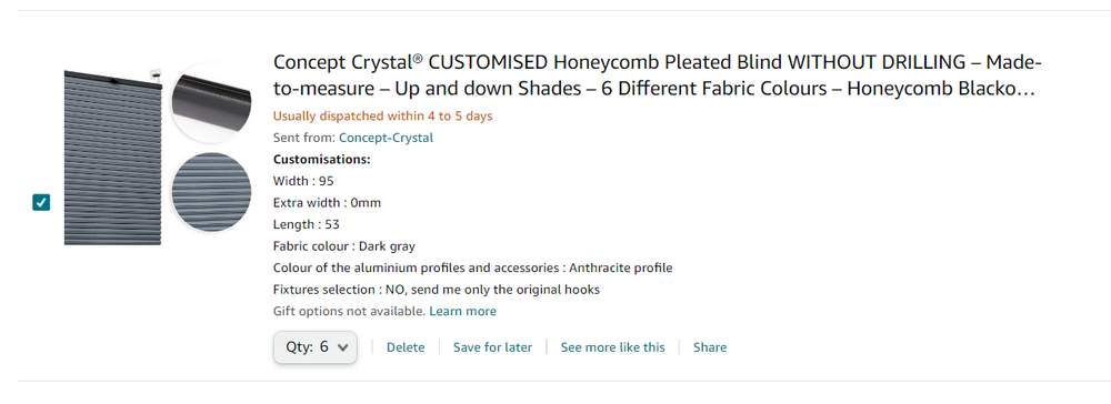 The standard hooks will be swapped for adhesive fixings for the following blinds: