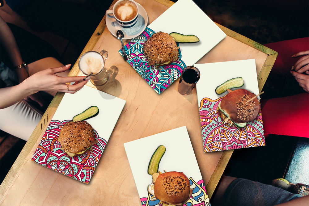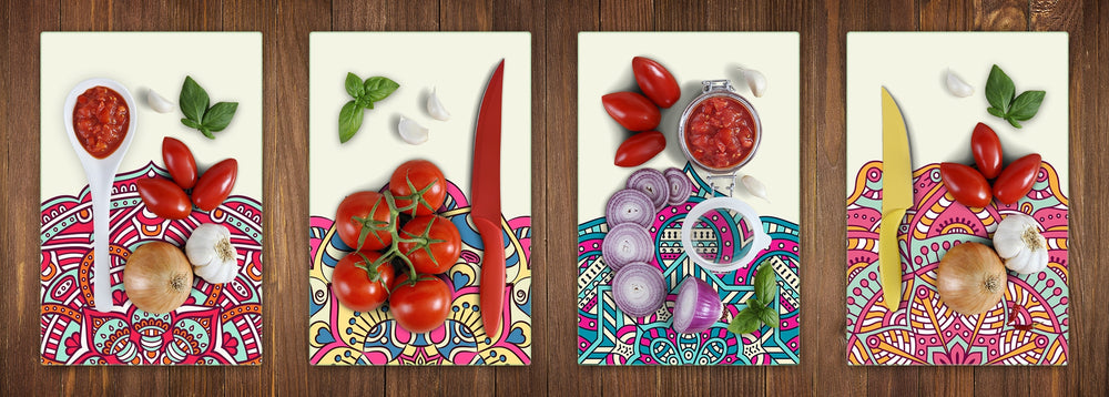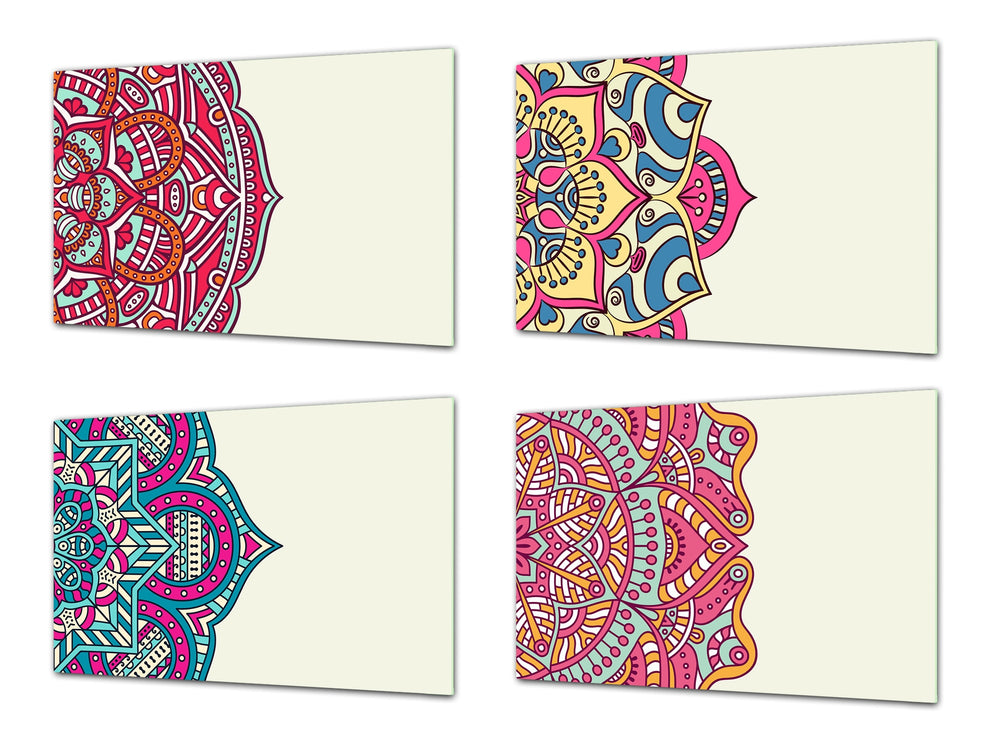 Lot de 4 planches à découper en verre trempé avec bords polis et arrondis.
