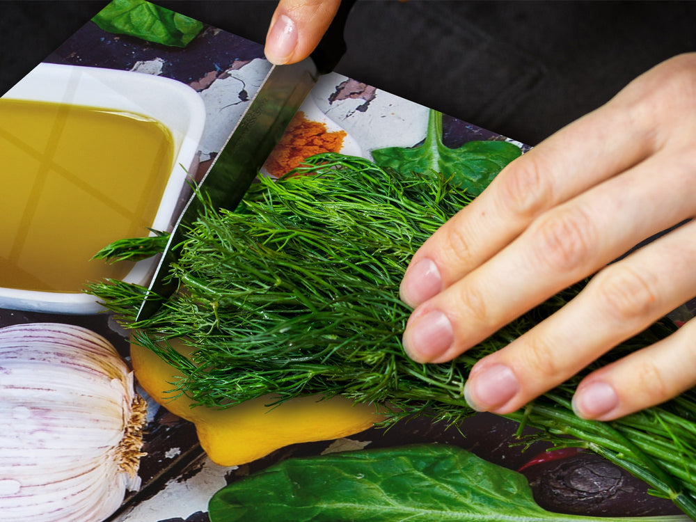 - GIGANTIC TEMPERED GLASS Kitchen Board both highly functional and beautiful is a must-have in every modern home; its colorful, artistic designs bring a sleek and contemporary style to your kitchen or dining area