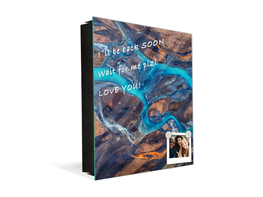 La nostra cassettina per le chiavi con disegno a tua scelta è anche una lavagna magnetica in vetro per i messaggi e le annotazioni di tutta la tua famiglia.