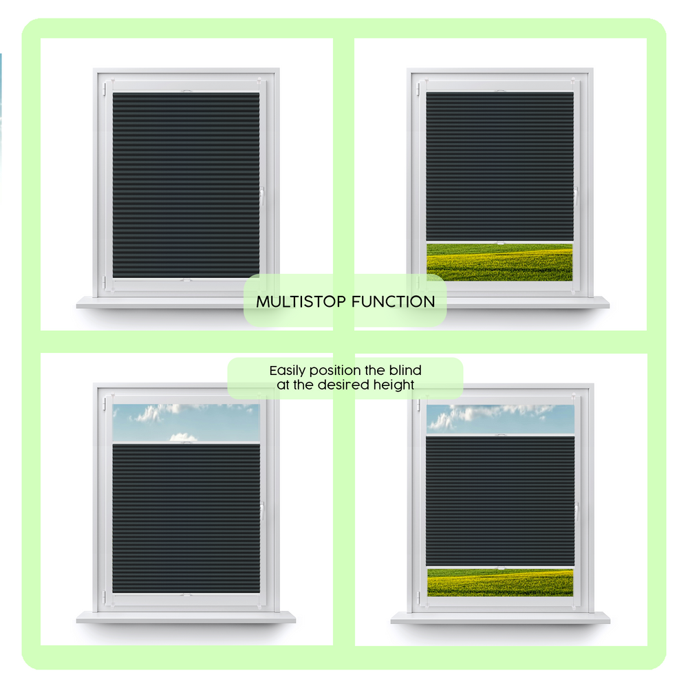Block out unwanted sunlight effortlessly with these made-to-measure blackout pleated shades. Designed for easy adhesive installation without drilling, offering privacy and comfort for any room.