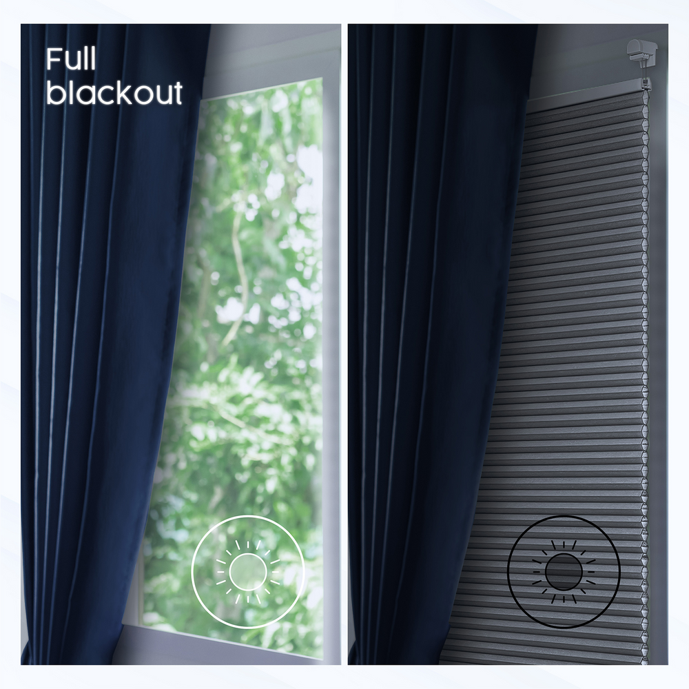 Our blinds use high-quality 100% blackout honeycomb fabric that blocks light efficiently.