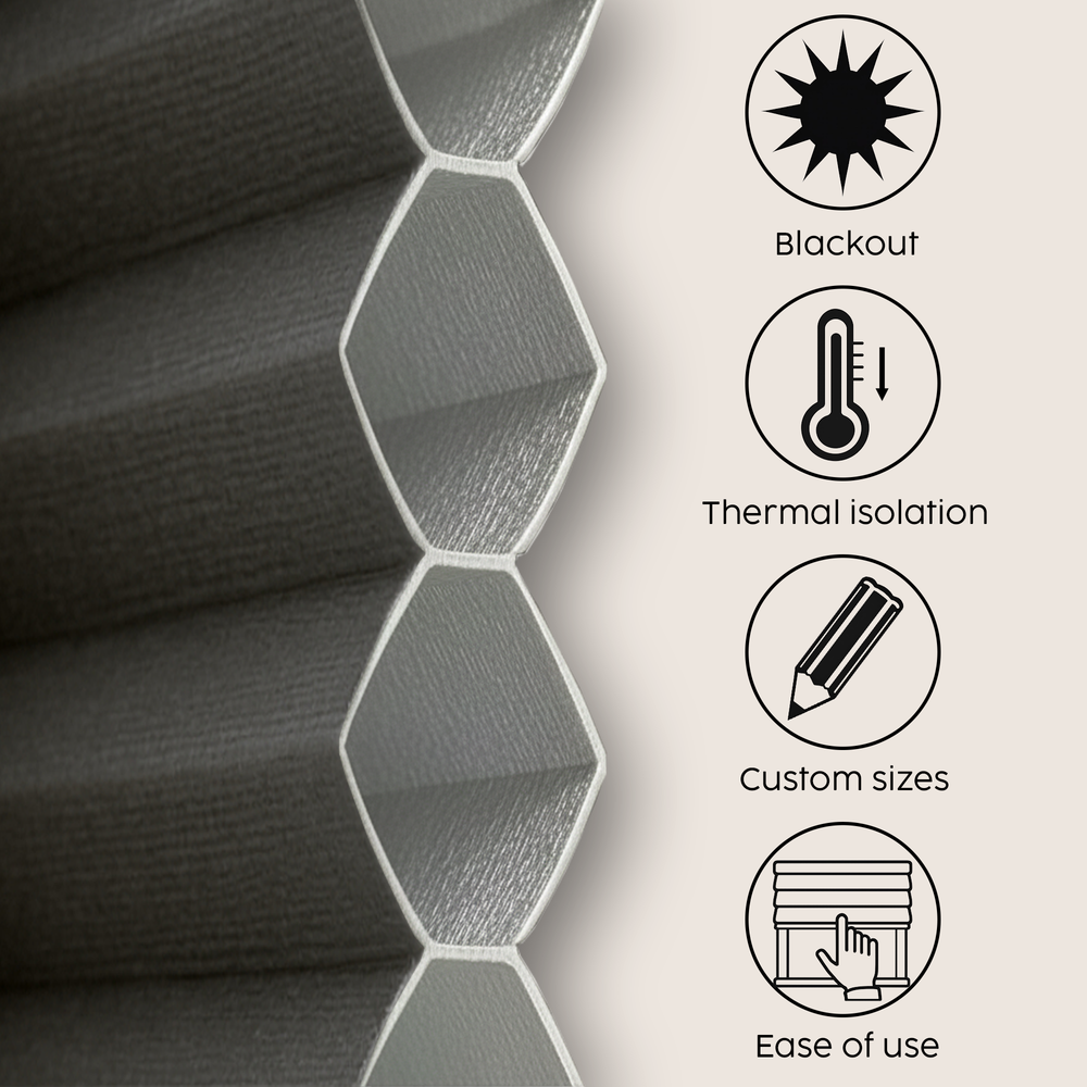 Crafted from high-quality double-layer honeycomb fabric, these blinds block 100% of unwanted light, creating a dark, cozy atmosphere. Minimal light leakage along the edges ensures maximum comfort and privacy.