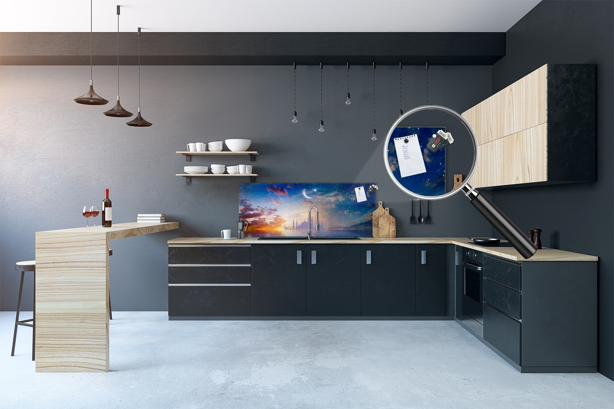 Made from high-quality tempered glass, these panels protect your walls from splashes and stains while adding striking, large-format designs inspired by natural scenery and city skylines. Perfect for modern, classic, or contemporary kitchens.