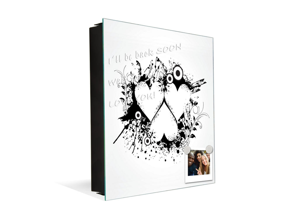 -THREE IN ONE: Decorative Key Box - Magnetic Glass Markerboard – Decoration of your choice
