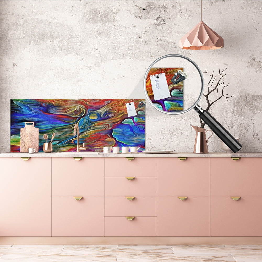 Our Glass Splashbacks can be used as: kitchen anti-splash panel, magnetic surface kitchen backsplash, bathroom backsplash, magnetic splashback for wall protection, protective panel for kitchen, splashbacks for bathroom sinks, kitchen memo board and similar.