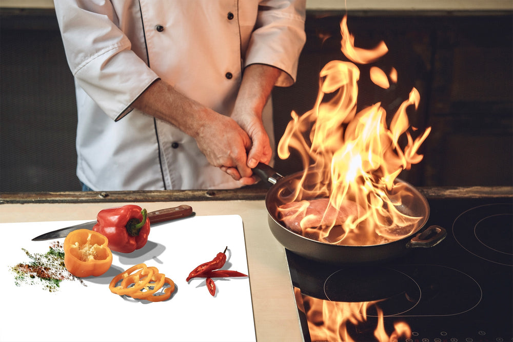 - MULTIPURPOSE GLASS BOARD can be used as cutting board (meat, fish, vegetables & fruits), as a serving tray, glass trivet, hot pot stand, cheese fruit platter, pastry board, worktop saver and as INDUCTION COOKTOP COVER (depending on the size chosen)