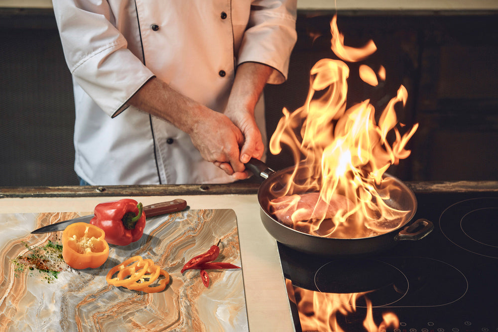 They can be used as a practical induction cooktop cover to protect the cooking plates; as a splashback, to protect the walls from splashes and stains; as a worktop, to offer more space in the kitchen when we need it.In addition, it is a great cutting board, offering optimal hygiene during cutting and preparing food, but it can also be used as a pastry or kneading board allowing the dough to turn and lift easily.