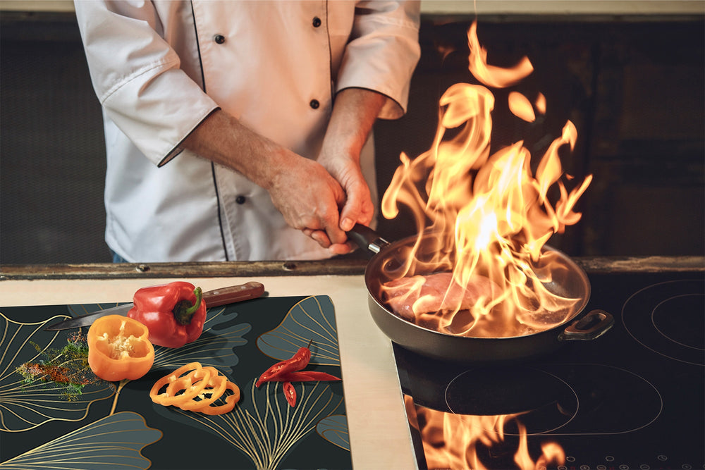 Induction Cooktop Cover & Splashback – protects stove and walls from spills while enhancing your kitchen with floral patterns.