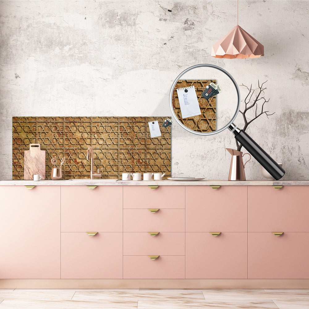 The metal back-coating on the splashback turns the glass surface into a magnetic one which allows you to stick to it your notes, papers, recipes, tickets with the use of very strong magnets (neodymium magnets) and thus have additional space for your daily reminders.